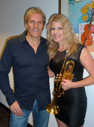 I’m on tour with Michael Bolton right now as his trumpet player. Michael Lington, the saxophone player, and I make up his horn section. MB has several songs with horns in his library, including the big band and blues numbers. When not playing my trumpet in the show, I dance and do a little background vocals.