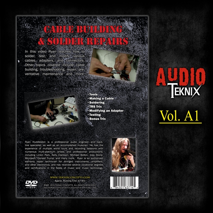 The Tricknology Video Series, with 8 DVD's & more than 6 hours of one-on-one instruction, is perfect for every Musician, Engineer or Technician. Ryan Huddleston takes you into the shop, into the studio, and on the road with him, to teach you all the best trix of professional Audio Engineers & Backline Technicians.