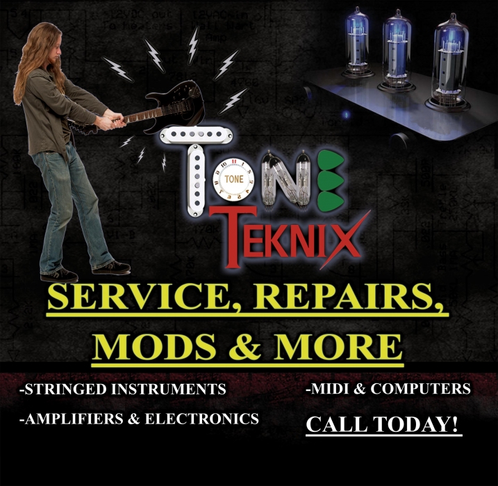 TONE TEKNIX is a small team of manufacturer certified stringed instrument and amplifier/ electronics technicians, focused on professional touring & recording. Our services include servicing, maintenance, repairs, modifications, and upgrades. We also work on many other electronic devices; including microphones, keyboards, speakers, cables, rack equipment, road cases, and much more. We have a couple promotional offers right now.